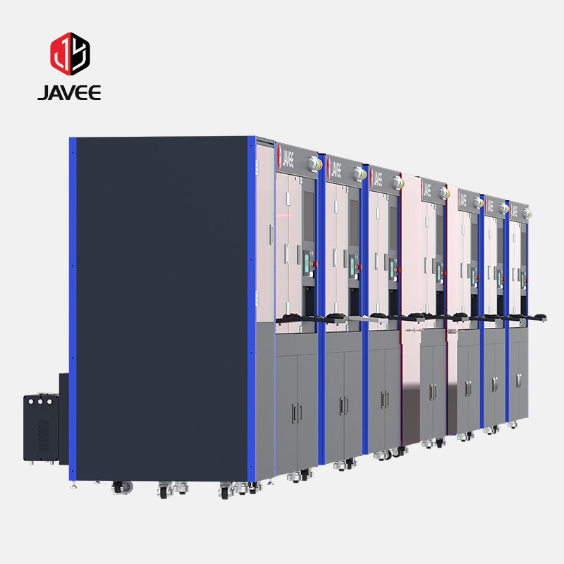 J119矩形電連接器全自動(dòng)化柔性生產(chǎn)線,其中J119A共有40種絕緣件,J119B共有56種絕緣件,與J163B配合使用,可兼容三大系列,實(shí)現(xiàn)多種產(chǎn)品柔性上料,有效保證絕緣件組件的精準(zhǔn)裝配,并通過機(jī)器人自動(dòng)運(yùn)作,代替了人工將插針插孔壓入絕緣件內(nèi)一系列動(dòng)作,即提高了生產(chǎn)效率,又能有效的反饋出壓入時(shí)的壓力數(shù)據(jù)。通過整條生產(chǎn)線上各機(jī)構(gòu)的柔性配合,完美的實(shí)現(xiàn)了該設(shè)備的功能。