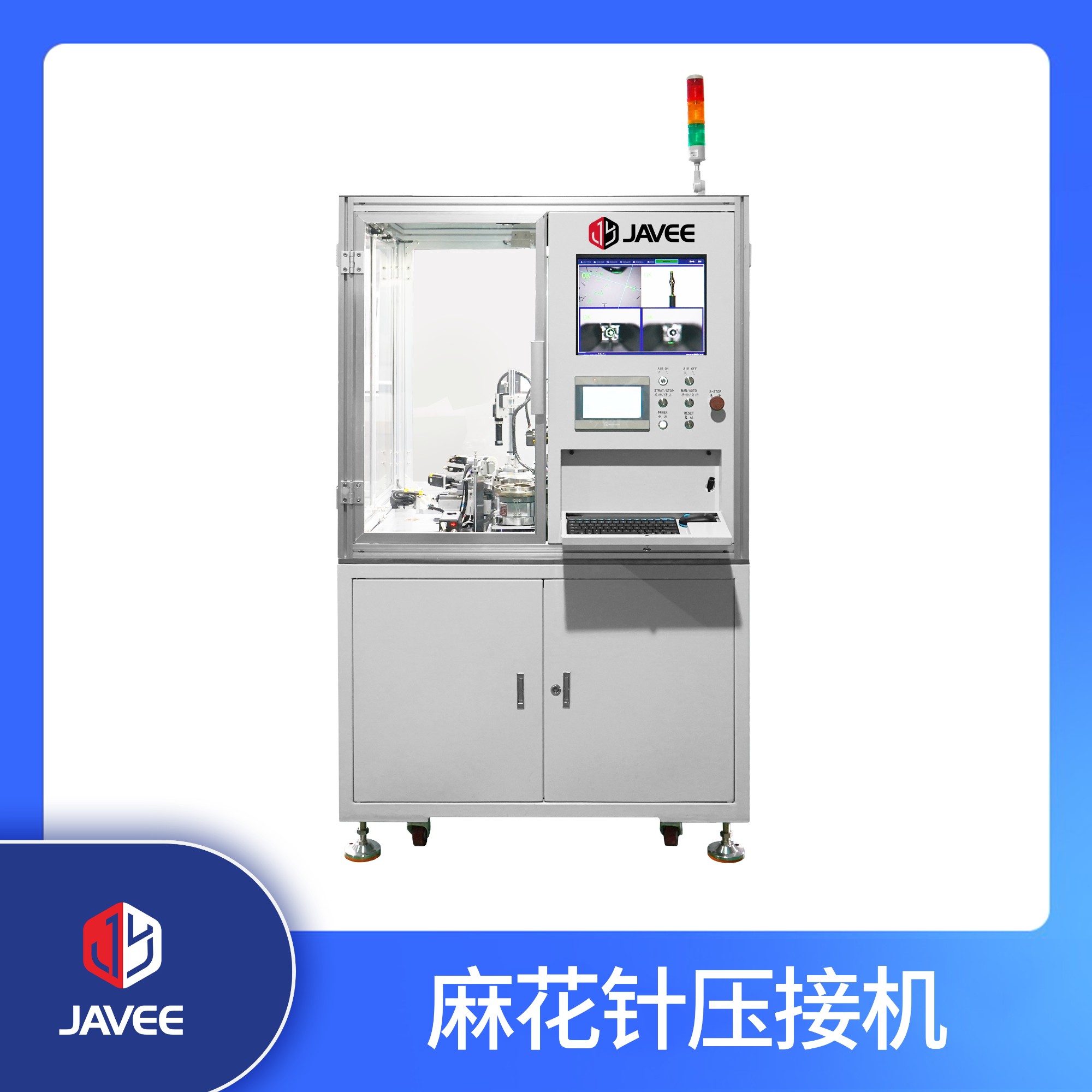 設(shè)備名稱(chēng):麻花針全自動(dòng)壓接機(jī) 設(shè)備尺寸:1000*750*2000mm 生產(chǎn)效率:10-15pcs/min 設(shè)備功率:2000W 氣壓/電壓:0.4-0.6Mpa/220VAC