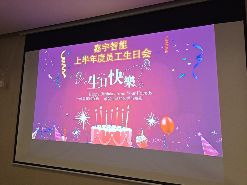 “用意想不到的甜蜜編織幸福的花籃送你,像花兒一樣綻開(kāi)在你生日聚會(huì)里,于是甜蜜遍布你房間的每個(gè)角落里,愿你擁有最美好的祝福”。嘉宇智能祝各位同事生日快樂(lè)!