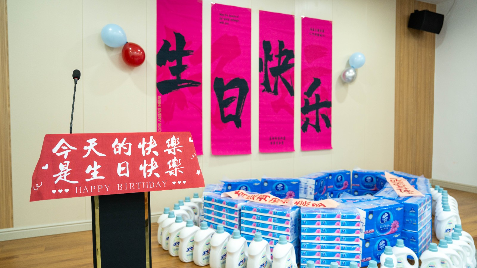 就像 6 月 28 日為 上半年過生日的員工舉辦的集體生日會,精心布置的現(xiàn)場,充滿了溫馨的氣息。五彩的氣球、閃爍的燈光,仿佛將這個空間變成了夢幻的樂園。